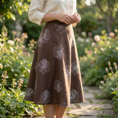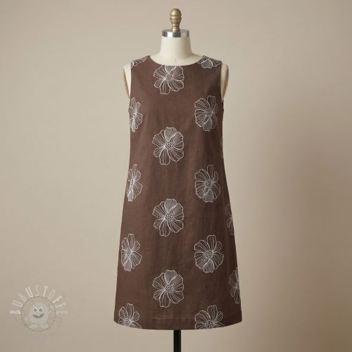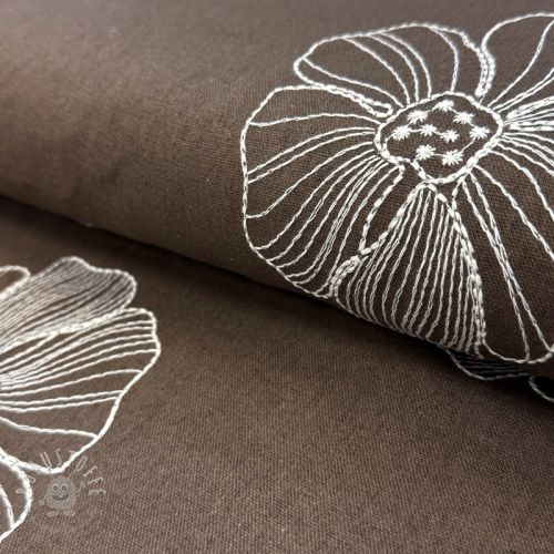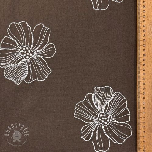 Viskosestoff leinen EMBROIDERY Flower Maya brown