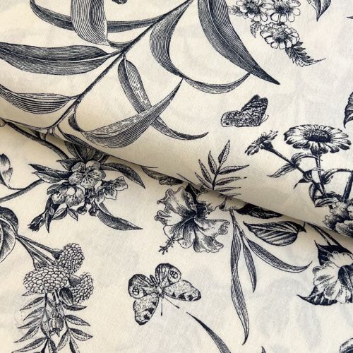 Viskosestoff leinen Floweria navy
