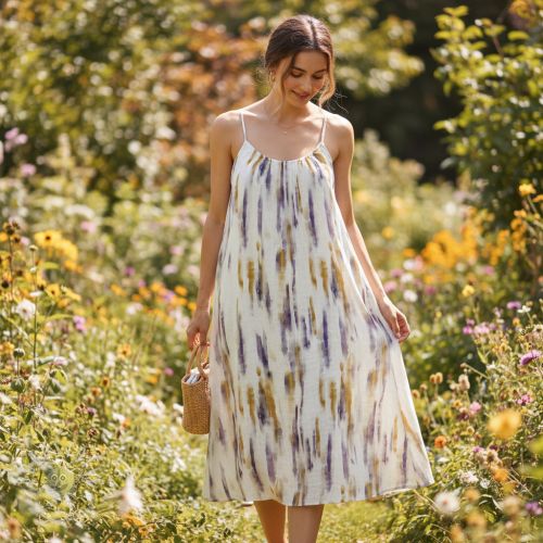 Viskosestoff leinen Natural Lin Lina green digital print