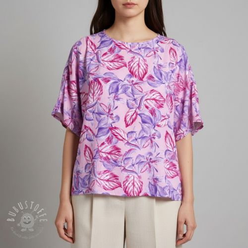 Viskosestoff RADIANCE Anabella leaves pink digital print
