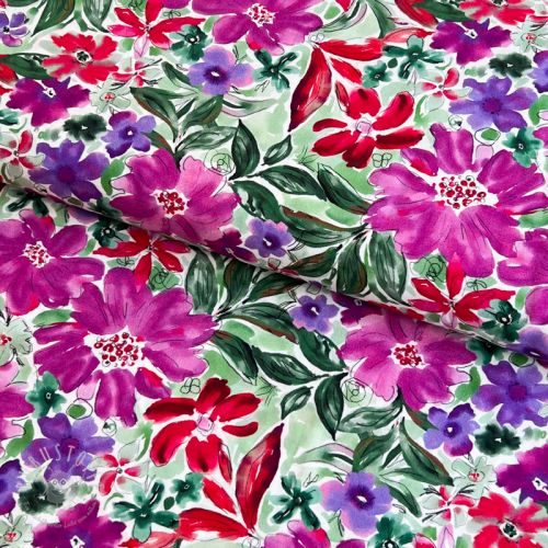 Viskosestoff RADIANCE Gentle flowers purple digital print