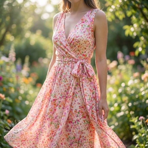 Viskosestoff SATIN Dots digital print