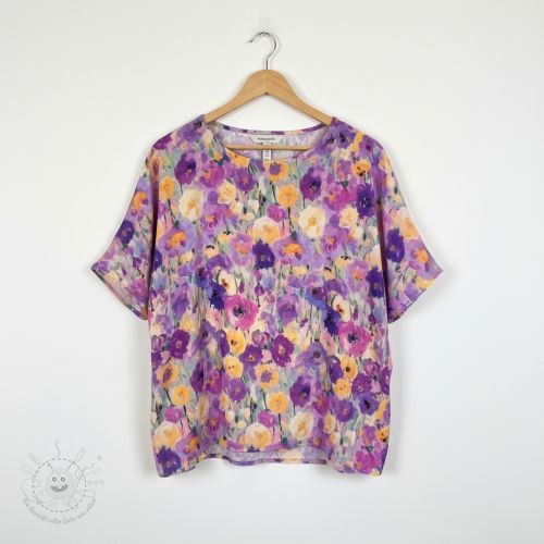 Viskosestoff SATIN Lavender flowers digital print
