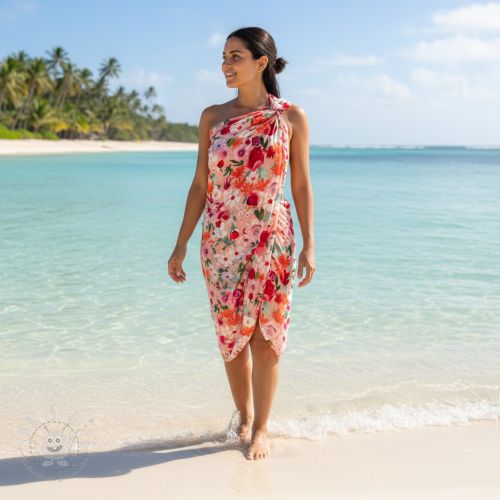 Viskosestoff SATIN Red flowers digital print